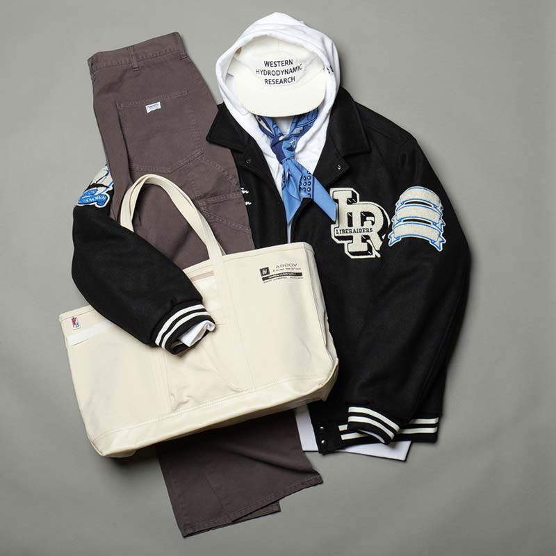 ラフなレイヤードで仕上げたカジュアルなスタイルには、キャンバス地のトートバッグが相性抜群。 気負わない素材感が、ストリートなコーディネートに自然と馴染み、こなれた雰囲を演出します。